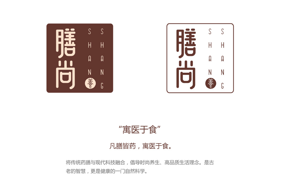 點睛之筆在于[養],結合[膳尚]這個名字,清晰明了的點出品牌定位[養生廚房]。最大程度的、最直觀的展現出品牌核心價值,與用戶建立情感溝通,增加用戶對于品牌的理解,提升品牌好感。